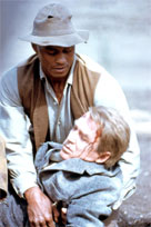 Athlète noir d’une carrure exceptionnelle avec son double mètre, Woody Strode a été tour à tour indien, africain ou gladiateur romain. Il connaît une année 1960 exceptionnelle avec deux chefs d’œuvre, Le Sergent noir de John Ford et Spartacus de Stanley Kubrick qui font rentrer ce second rôle modeste dans la légende. De son nom complet Woodrow Wilson Woolwine Strode, Woody Strode est né à Los Angeles, le 25 juillet 1914. D’un père noir et d’une mère Cherokee, il montre rapidement des capacités sportives exceptionnelles dès ses années universitaires. En 1936, il pose nu pour une série de portraits d’athlètes présentés aux Jeux Olympiques de Berlin mais à cause de la présence d’athlètes juifs et noirs, l’exposition est interdite. Il multiplie les performances comme décathlonien et intègre l’équipe semi-pro universitaire de football à UCLA. Aventures africaines Quand la seconde guerre mondiale éclate, Woody Strode rejoint l’Armée de l’Air des Etats-Unis. Il épouse la princesse hawaiienne Luukialuana Kalaeloa, le 14 octobre 1940. De leur union, naissent Woody Jr. et June et le couple restera uni jusqu’à la mort de Luana, le 17 septembre 1980. Le géant noir se remarie le 10 mai 1982 avec Tina Ellawee. Woody Strode fait de la figuration en indien dans La Chevauchée fantastique et sa première vraie apparition en 1941 dans Crépuscule d’Henry Hathaway. Il obtient des rôles plus spectaculaires dans les années 50. Présent dans des films d’aventure comme Le Trésor des Caraïbes, La Cité sous la Mer ou Les Boucaniers, il devient un redoutable guerrier africain face à trois Tarzan, incarnés par Gordon Scott, Jack Mahoney et Ron Ely, à Jungle Jim alias Johnny Weissmuller et auprès de Bomba, interprété par Johnny Sheffield, ancien fils adoptif de Tarzan. Il occupe deux rôles de roi d’Éthiopie et d'esclave dans Les Dix Commandements de Cecil B. DeMille. L'ami de John Ford Woody Strode aborde le film de guerre en incarnant le soldat de 1ère classe Franklin, torturé et couard dans La Gloire et la Peur de Lewis Milestone et le suspense maritime dans Panique à bord d’Andrew L. Stone aux côtés de Robert Stack. Il retrouve ses racines indiennes dans plusieurs westerns de bonne facture comme Les deux Cavaliers de John Ford. Il devient un des acteurs fétiches du réalisateur obtenant le rôle principal dans Le sergent noir, accusé de meurtre et de viol d’une femme blanche. Ford lui confie des rôles plus sommaires dans L’homme qui tua Liberty Valance auprès de John Wayne et James Stewart et Frontière chinoise avec Anne Bancroft et Margaret Leighton. L’acteur restera très proche de John Ford, passant plusieurs mois par an auprès de lui, lui servant de concierge et il sera plus tard présent à son chevet quand le cinéaste s’éteindra en 1973. Strode à Cinecittà Déjà star avec Le Sergent Noir, il confirme son statut en endossant le rôle du gladiateur Draba dans Spartacus de Stanley Kubrick face à Kirk Douglas. Il est Jake Sharp spécialiste du tir à l’arc dans Les Professionnels de Richard Brooks et le chef apache Chato dans Shalako d’Edward Dmytryk avec Brigitte Bardot et Sean Connery. On le retrouve dans plusieurs séries comme Rawhide, Batman ou Tarzan avec Ron Ely. Il s’installe en Italie où il tourne avec Valerio Zurlini dans Black Jesus, Sergio Leone dans Il était une fois dans l’Ouest où il se fait refroidir par Charles Bronson, Fernando Di Leo dans L’Empire du Crime et Gianfranco Parolini dans Trinita nous voilà. Glissement vers la série B Après une bonne apparition dans La Poursuite sauvage de Daniel Mann, il sombre dans la série B sous la direction de John Bud Cardos (L’horrible Invasion) ou William Lustig (Vigilante). Il redore son blason à partir du milieu des années 80 en participant à Cotton Club de Francis Ford Coppola, Lust in the Dust de Paul Bartel, Colère en Louisiane de Volker Schlöndorff et La Revanche de Jesse Lee de Mario Van Peebles. Atteint d’un cancer du poumon, Woody Strode fait une dernière apparition où il est très affaibli dans Mort ou Vif de Sam Raimi auprès de Sharon Stone et Gene Hackman. Woody Strode meurt dans son domicile de Glendora en Californie, le 31 décembre 1994. Avec Sidney Poitier et Jim Brown, il a fait partie des plus importants acteurs noirs de son époque. FILMOGRAPHIE : | |